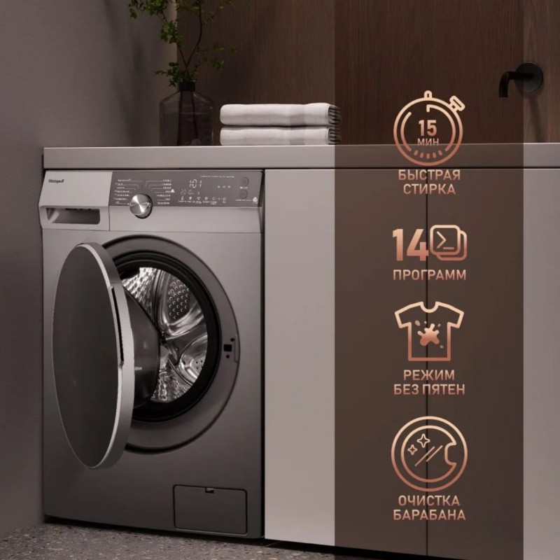Отдельностоящая стиральная машина автомат Weissgauff, выполненная в цвете "серебристый металлик", оснащенная инверторным двигателем, работающим по особой технологии BLDC, имеет поистине фантастический показатель загрузки до 12 кг белья и внушительную скорость отжима до 1400 оборотов в минуту - это гарантия по-настоящему высокого результата при каждом запуске цикла стирки вашего белья.