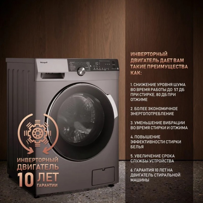 • 10 лет гарантии на инверторный двигатель - это живое подтверждение немецкой уверенности Weissgauff в качестве выпускаемой нами продукции!