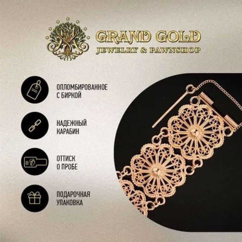 GRAND GOLD Браслет фантазийного плетения из красного золота полновес Золото 585 Размер 20,5 Ширина