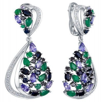 Роскошные серьги из белого золота и коллекции Diva с разноцветными драгоценными и полудрагоценными камнями несомненно обратят на себя внимание. Английский вид застежки.